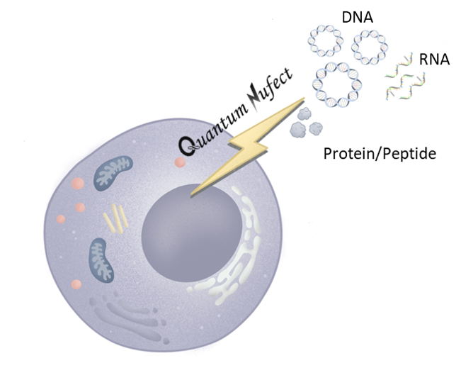 Quantum Nufect™ is a highly efficient and cost-effective universal electroporation buffer system. In conjunction with an electroporator (including, but not limited to Lonza's nucleofector™), it can be used to efficiently introduce DNAs, RNAs, or proteins into multiple cell types with minimal reduction in cell viability.